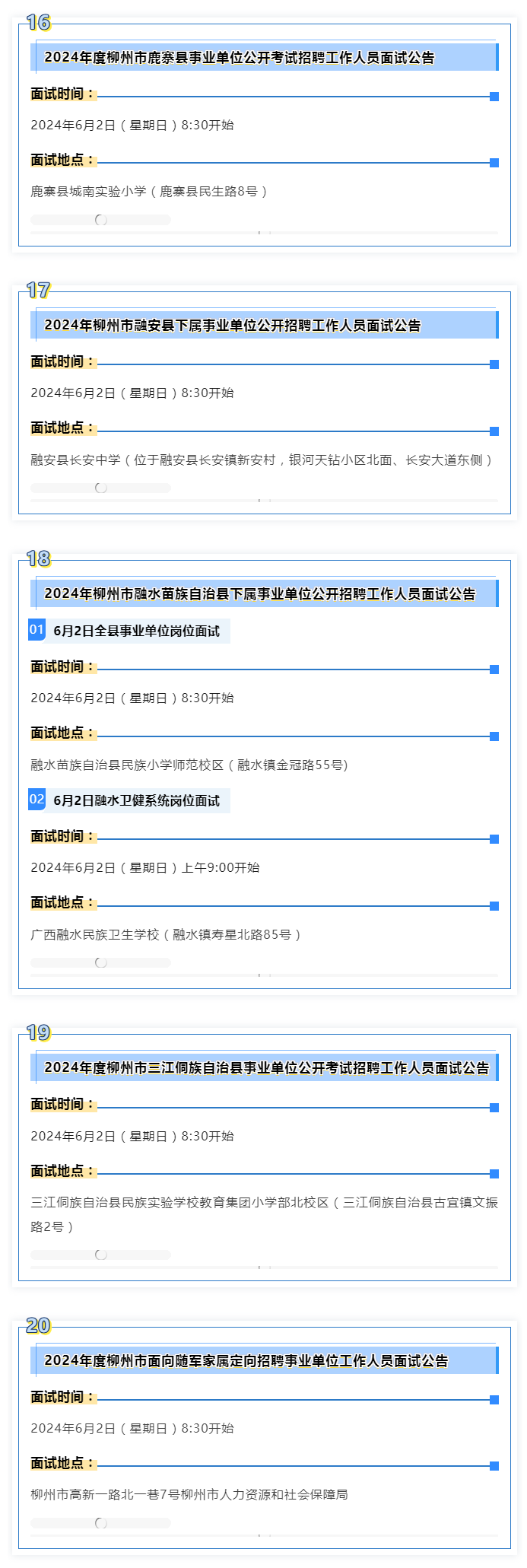 原文標(biāo)題:本周末面試!時間、地點要看好!2024年柳州市事業(yè)單位公開考試招聘面試注意這些↓