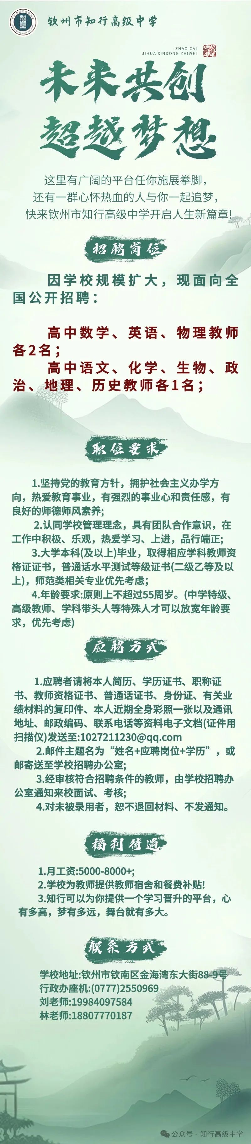 欽州市知行高級中學(xué)招聘公告