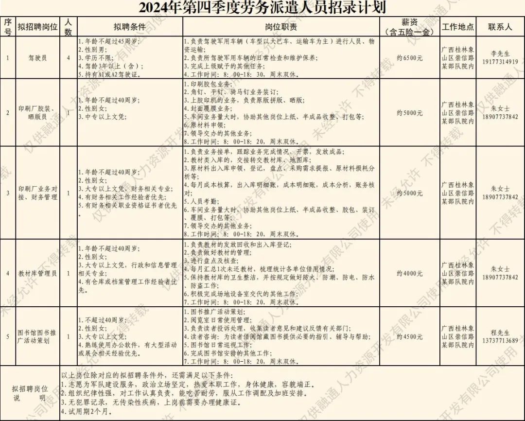 (五)公示錄用擬聘人員名單將在融通人力公司公眾號進行公示,公示期為5個工作日。公示無異議或者反映問題不影響聘用的擬聘人員,與融通人力資源開發(fā)有限公司簽訂勞務派遣勞動合同,辦理入職相關手續(xù)。