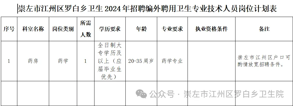 原文標題:崇左市江州區(qū)羅白鄉(xiāng)衛(wèi)生院招聘公告