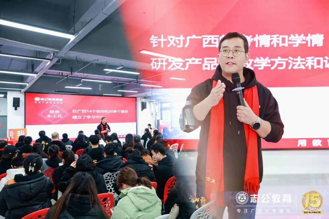 第一是極致本土化,董事長李勇表示這是志公教育集團安身立業(yè)的根本,他表示這要求對廣西公職考試響應(yīng)速度要快,針對廣西的考情和學(xué)情,研發(fā)產(chǎn)品教學(xué)方法和課程資料,這是對教研院的考驗,明確表示未來要把錢投在學(xué)員的服務(wù)上、老師的數(shù)量、學(xué)習(xí)班主任。志公教育現(xiàn)在有志公教育(保稅區(qū))全封閉基地,志公教育(中關(guān)村)全封閉基地,未來希望在桂林,柳州,百色等地也建立基地,讓志公教育在八桂大地生根,實現(xiàn)各美其美,美美與共。