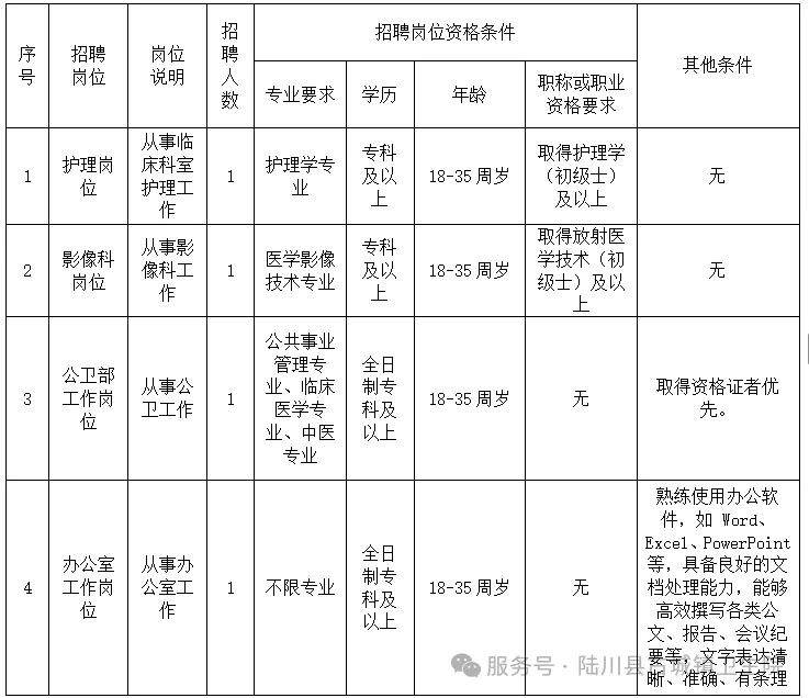 2、報名地點(diǎn):陸川縣古城鎮(zhèn)衛(wèi)生院綜合大樓六樓行政辦公室。