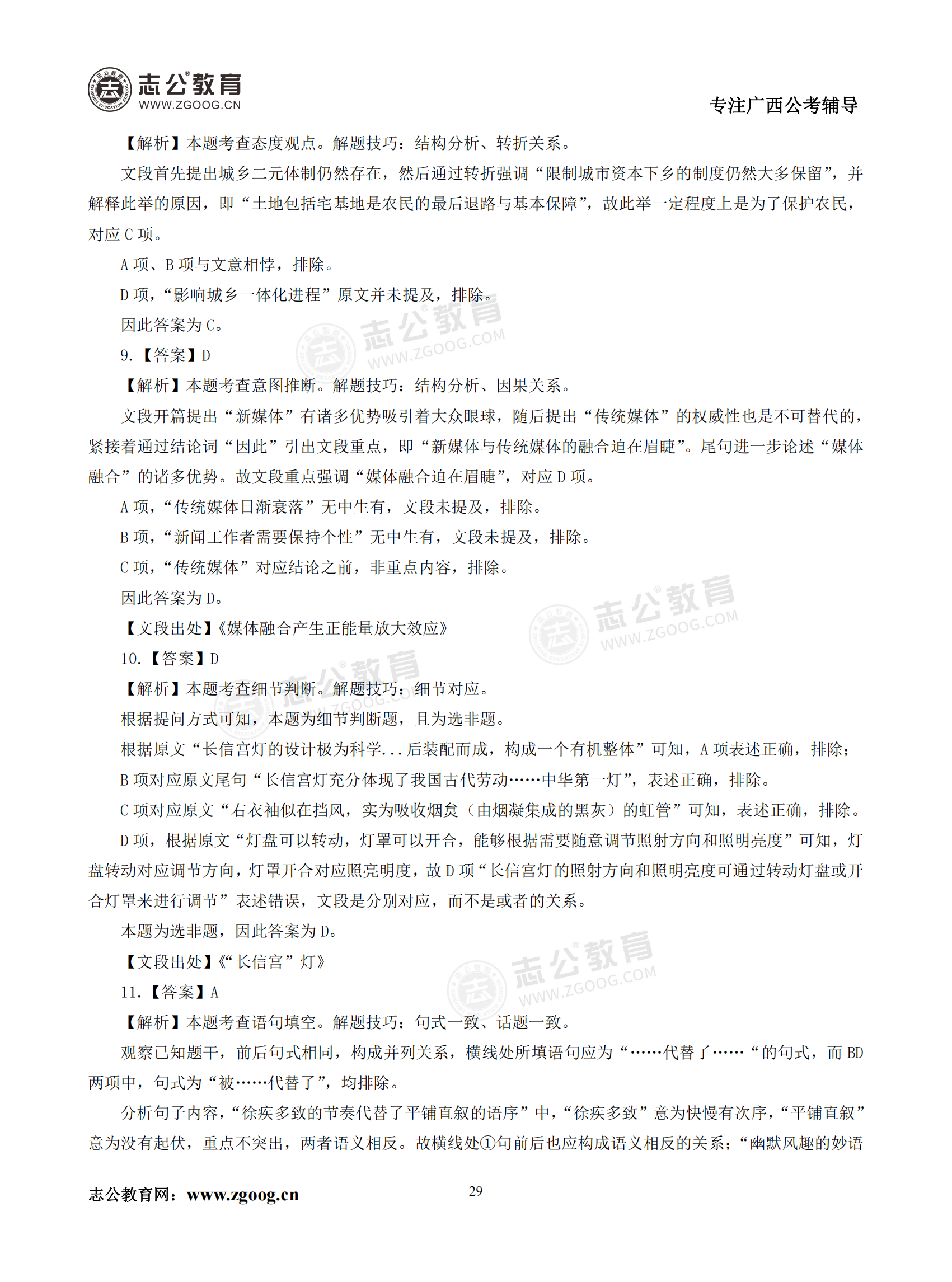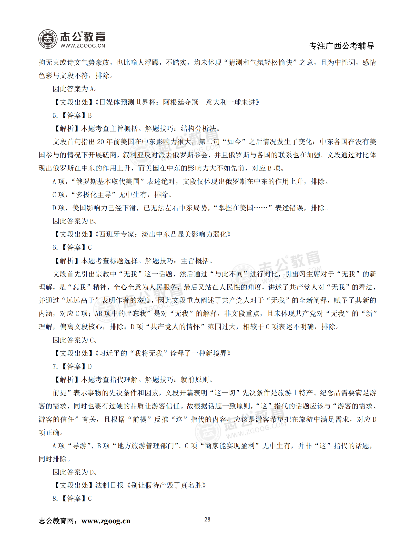 【公考模塊練習(xí)】言語理解題二(答案)