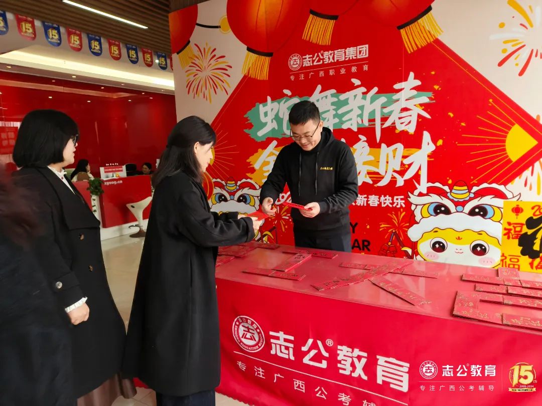 春節(jié)的喜慶氣氛猶在,而我們的心中早已裝滿了對未來的憧憬和期待。在未來的日子里,志公教育集團將一如既往地秉承12條企業(yè)核心價值觀,為廣西公職教育提供良好的產(chǎn)品和服務(wù),實現(xiàn)企業(yè)使命——幫助人才實現(xiàn)更高質(zhì)量的就業(yè),為員工創(chuàng)造最具幸福感的企業(yè),用教育成就夢想!相信在全體員工的共同努力下,志公教育一定能夠開創(chuàng)更加輝煌的未來yes