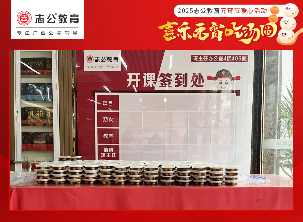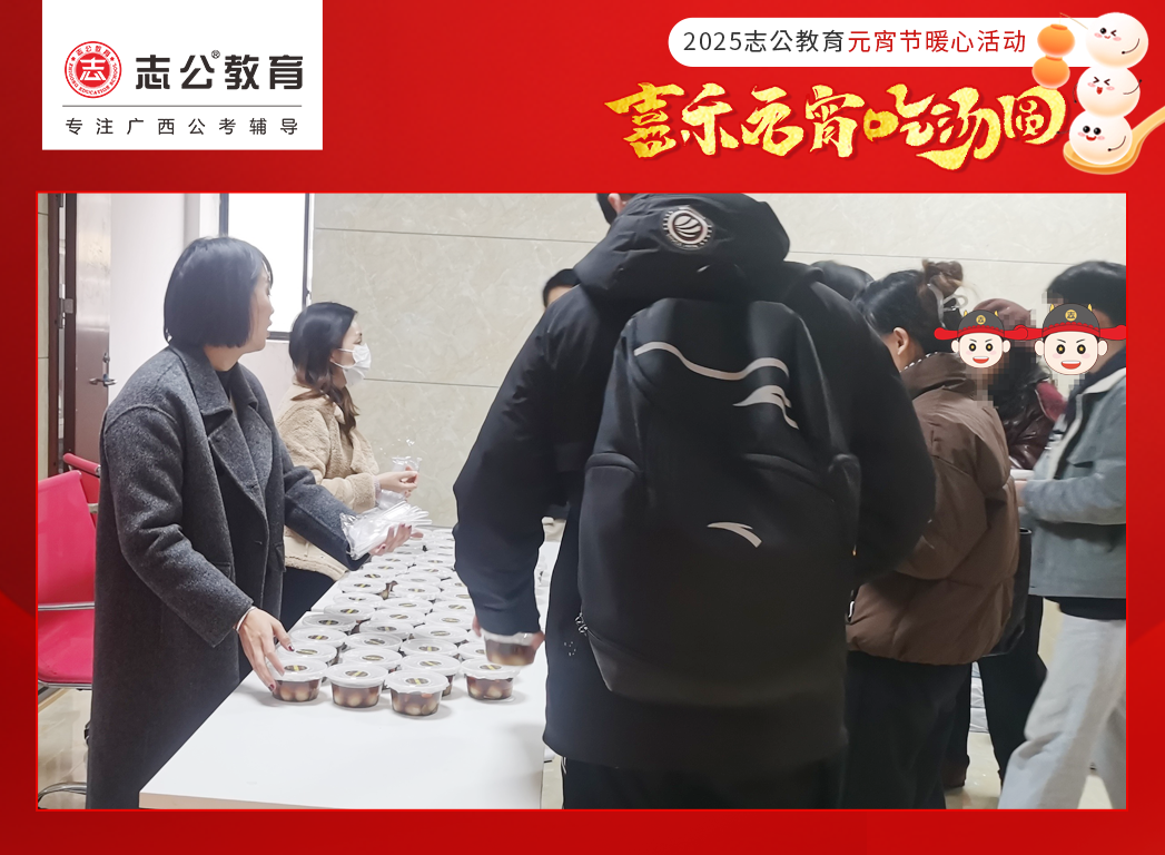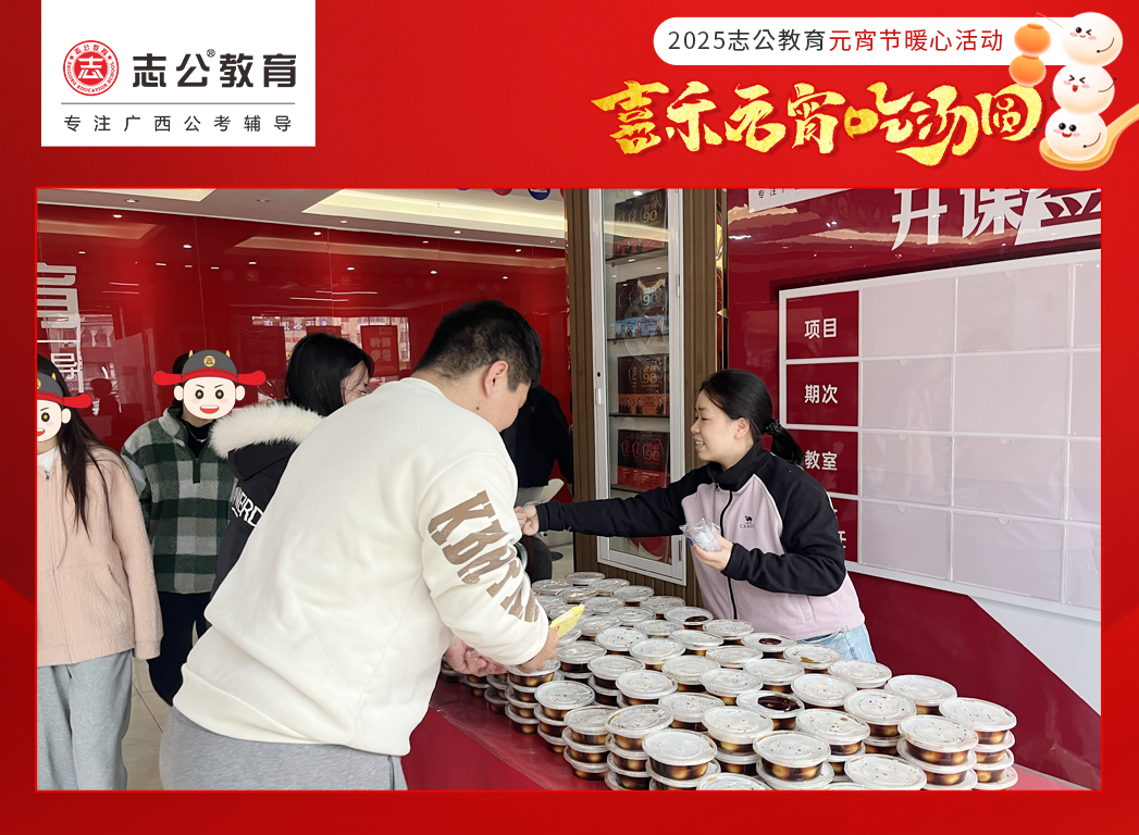 在緊張忙碌的公考備考之路上,每一位學(xué)員都在為了心中的夢想全力以赴 。堆積如山的備考資料,一場接一場的模擬考試,長時(shí)間的學(xué)習(xí)讓他們承受著巨大的壓力 。而這份在元宵節(jié)送上的湯圓,就像冬日里的暖陽,夏日里的清風(fēng),為他們帶來了片刻的慰藉 。