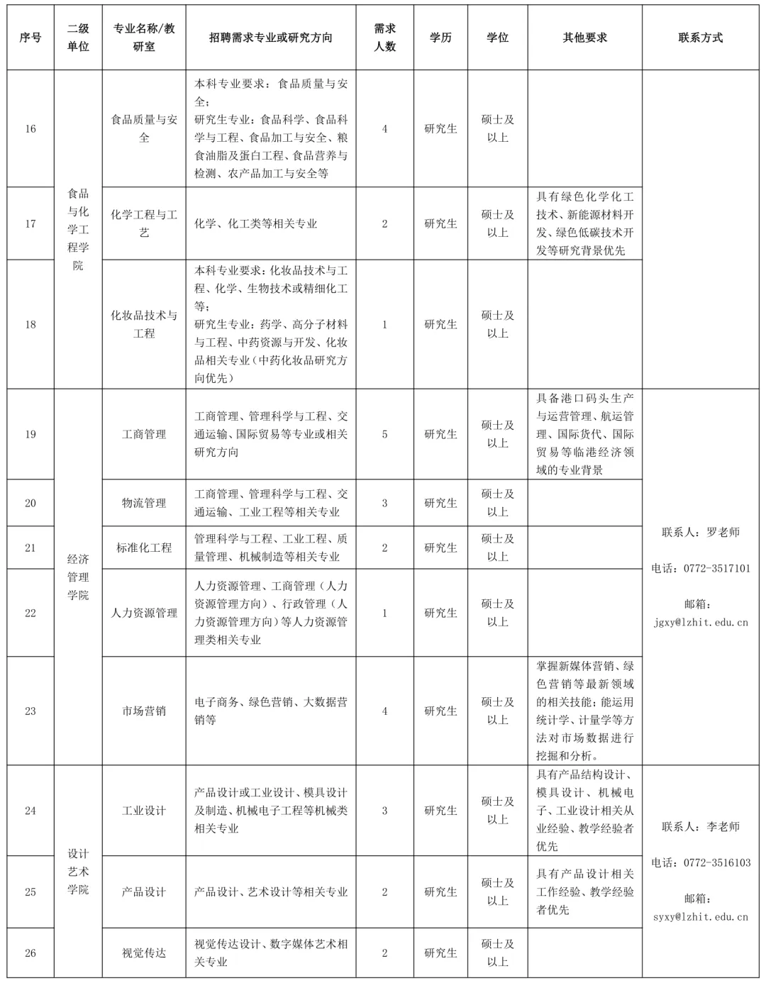 聯(lián)系地址:廣西柳州市魚(yú)峰區(qū)新柳大道99號(hào)柳州工學(xué)院人事處(科教樓1409辦公室)