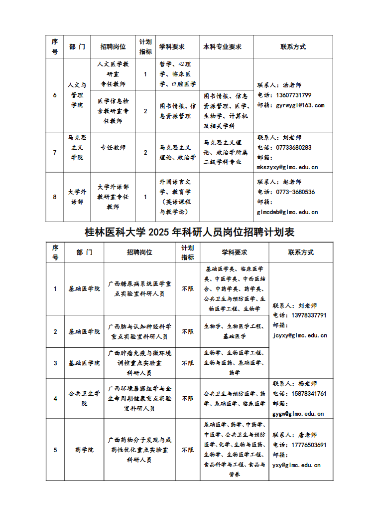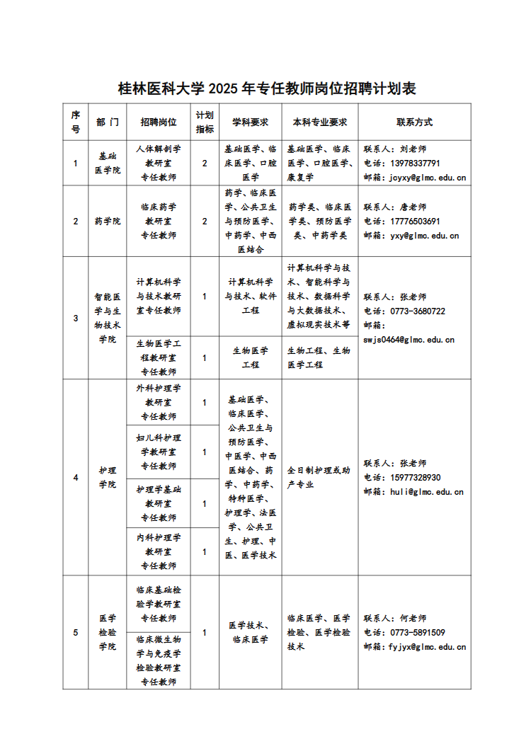 (二)各部門(mén)聯(lián)系方式見(jiàn):桂林醫(yī)科大學(xué)各崗位招聘計(jì)劃表。