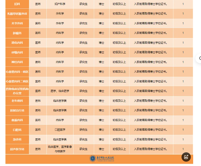 以上崗位均享受醫(yī)院科研獎(jiǎng)勵(lì)、培訓(xùn)進(jìn)修、晉升職務(wù)職稱等權(quán)利,以及五險(xiǎn)一金、用餐補(bǔ)助、帶薪年休假、工會(huì)福利等待遇。