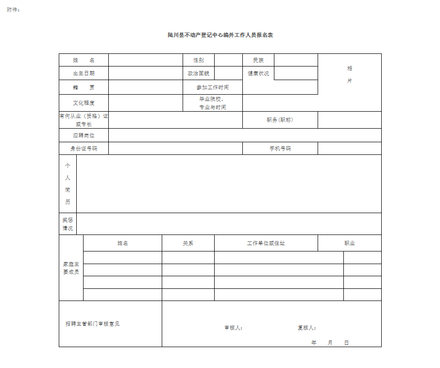 附件:《陸川縣不動產登記中心編外工作人員報名表》