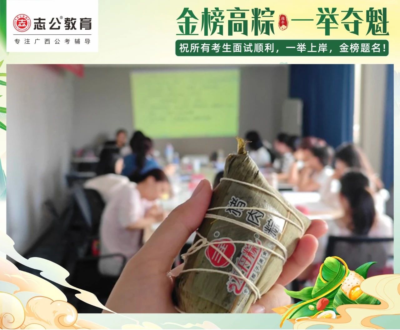 我們深知每一位學(xué)員為夢(mèng)想努力奮斗的不易。在這個(gè)端午節(jié),志公教育特別為地市學(xué)員準(zhǔn)備了剛出爐的新鮮粽子。希望大家在品嘗粽子的同時(shí),能感受到我們的支持與鼓勵(lì),在接下來的考試中一舉高 “粽”,實(shí)現(xiàn)自己的夢(mèng)想。