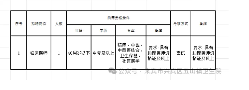 原文標(biāo)題:來賓市興賓區(qū)五山鎮(zhèn)衛(wèi)生院公開招聘編制外聘用人員公告