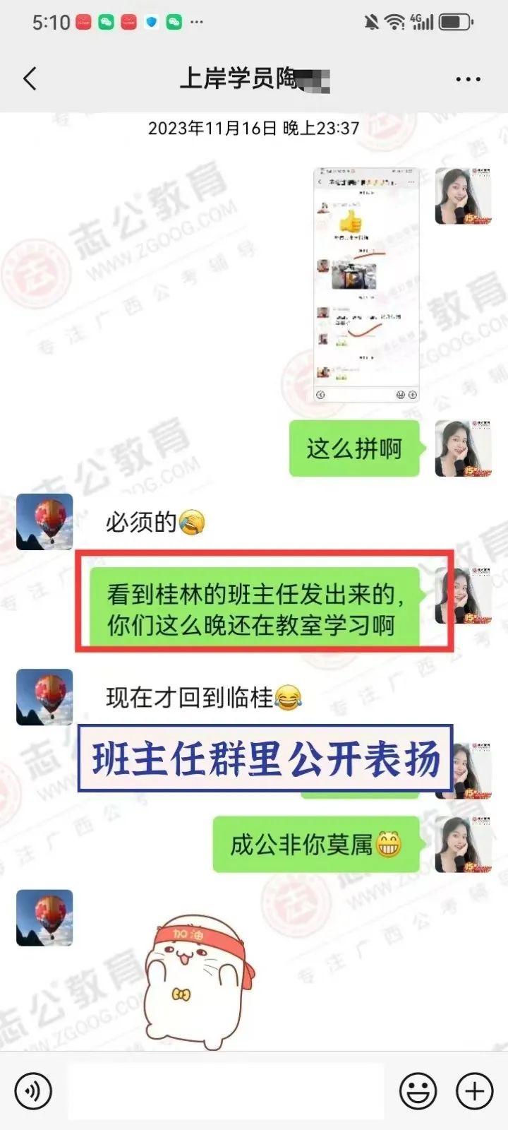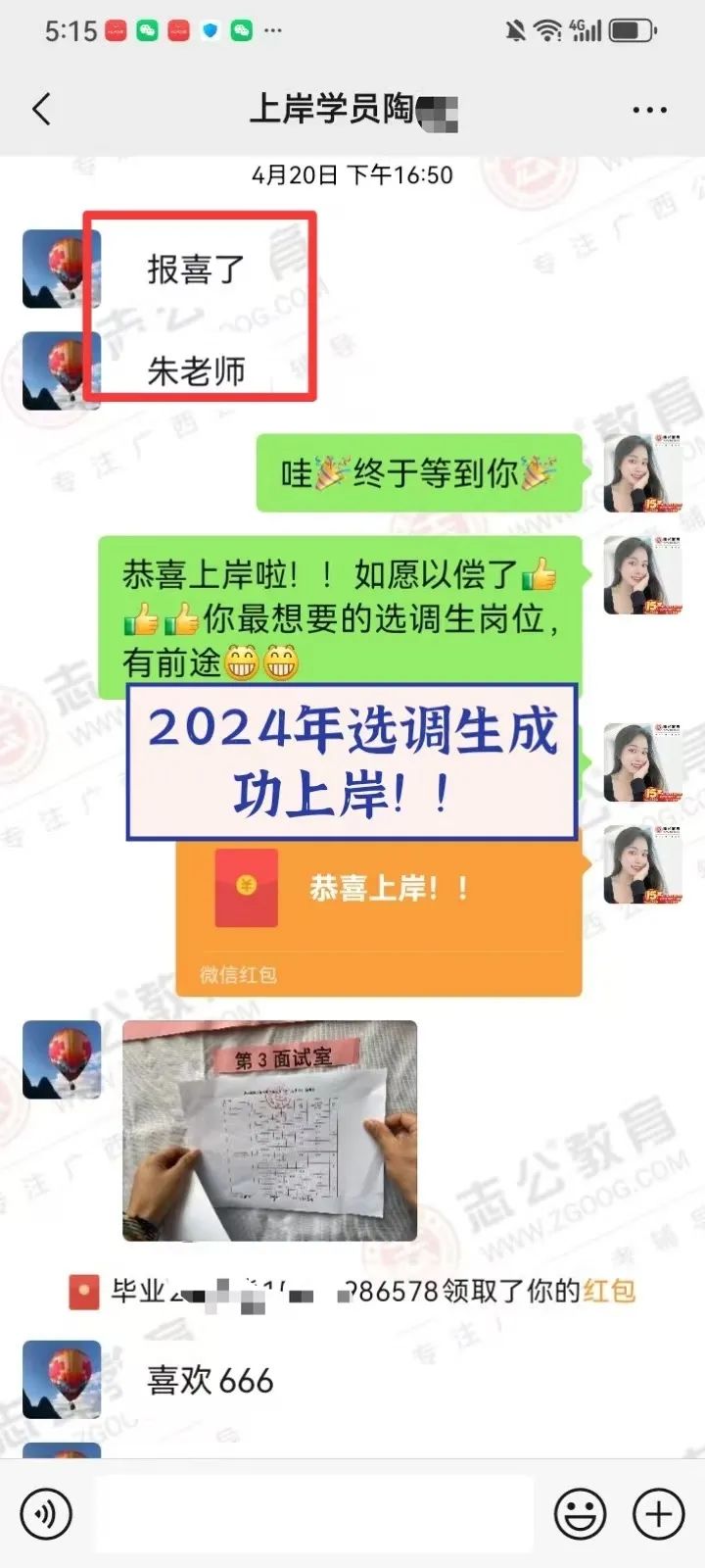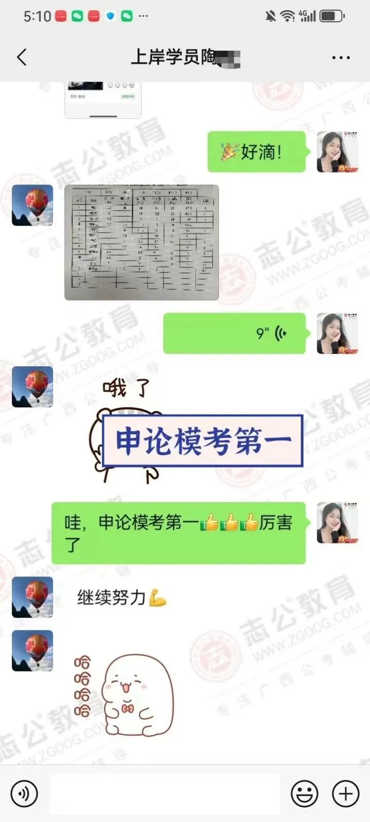 2023年,臨近研究生畢業(yè)時(shí),一次偶然的機(jī)會(huì),他得知同學(xué)的愛人也就是我,在我們志公教育任教。加我微信后跟我了解到我們志公有一個(gè)非常適合他的畢業(yè)成公課程,也了解到我們是一家優(yōu)秀的公考培訓(xùn)機(jī)構(gòu)后,8月他毫不猶豫地報(bào)了我們的畢業(yè)成功班。從那以后,他一邊上學(xué)一邊培訓(xùn),常常學(xué)習(xí)到深夜。2024年國(guó)考,他進(jìn)面了,聯(lián)系了我升級(jí)面試班,但未能成功上岸。不過他沒有絲毫氣餒,迅速調(diào)整心態(tài),繼續(xù)征戰(zhàn)農(nóng)信社和選調(diào)生。