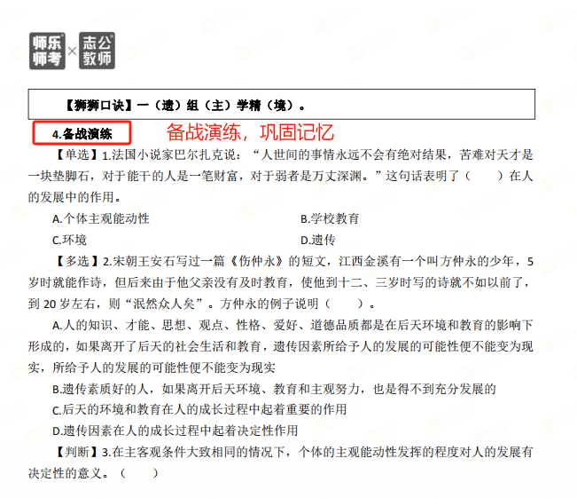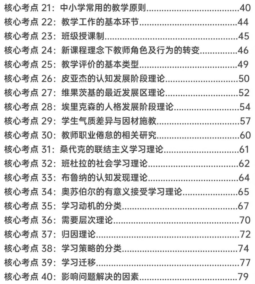匹配考綱要求,精選50個核心考點:銘師組團精研,基于考綱收錄《教育學與教學法基礎(chǔ)知識》《教育心理學與德育工作基礎(chǔ)知識》核心考點,重點突出,幫助考生學習記憶。