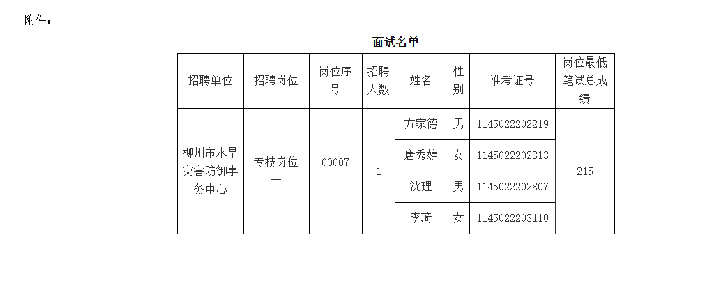 (一)面試結(jié)束當天,面試成績張貼在市水利局公告欄,并將同步在柳州市水利局官網(wǎng)公布,考生可自行查閱。