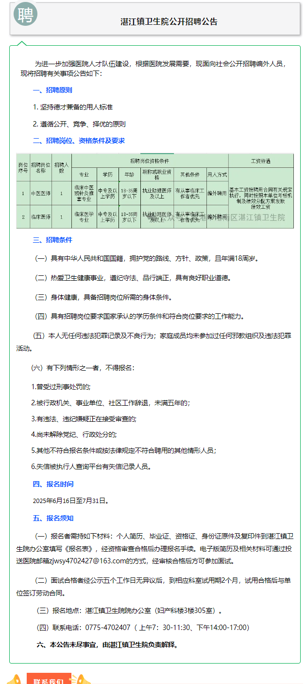 貴港市港南區(qū)湛江鎮(zhèn)衛(wèi)生院公開招聘編外人員的公告