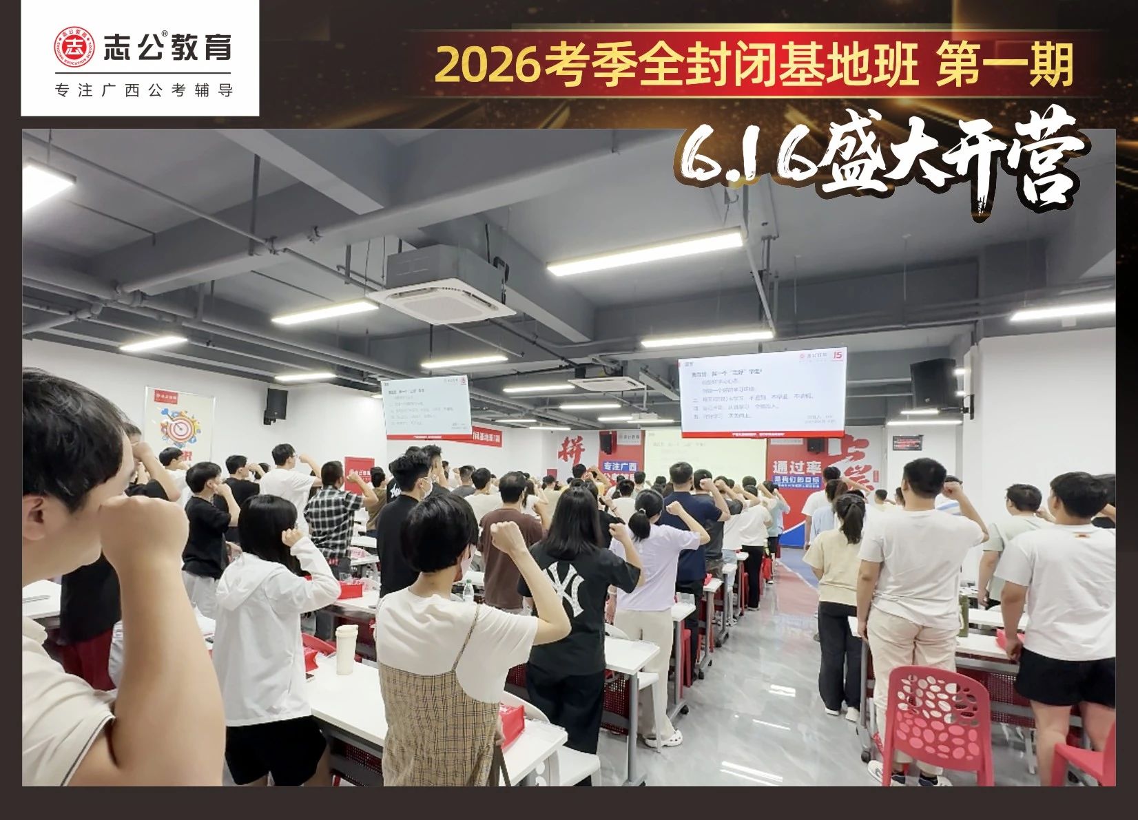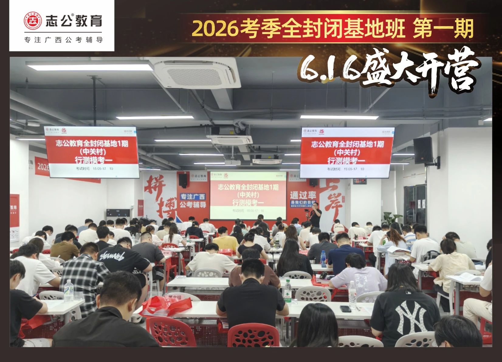 大家稍作休息之后,就是咱們期待已久的開班典禮啦!學(xué)員們在班主任的引導(dǎo)下分組就坐。大家目光灼灼,熱情高漲,迫不及待想要開啟學(xué)習(xí)模式??催@座無虛席的盛況,志公26考季全封閉基地班第1期課程實力名不虛傳,各位學(xué)員用飽滿的熱情和積極的態(tài)度迎接此次課程的開展,期待大家能夠完成自己的蛻變和成長!