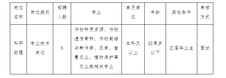 我所設(shè)有4個科室、1個種質(zhì)庫、1個中心和10個研究團隊。根據(jù)工作需要,現(xiàn)面向社會公開招聘編制外工作人員6名。現(xiàn)將有關(guān)事項公告如下: