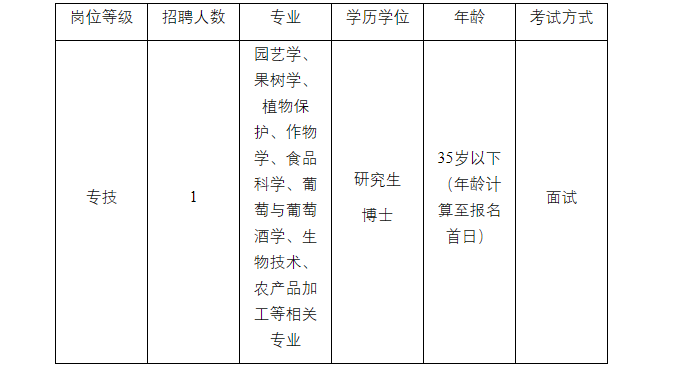 (二)園藝學(xué)、果樹學(xué)、植物保護(hù)、作物學(xué)、食品科學(xué)、葡萄與葡萄酒學(xué)、生物技術(shù)、農(nóng)產(chǎn)品加工等相關(guān)專業(yè)。