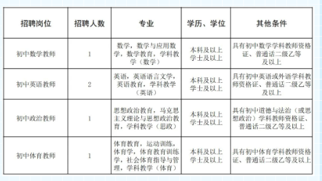 根據(jù)發(fā)展需要,學(xué)校擬招聘初中數(shù)學(xué)、英語、政治、體育頂崗教師,具體招聘信息如下: