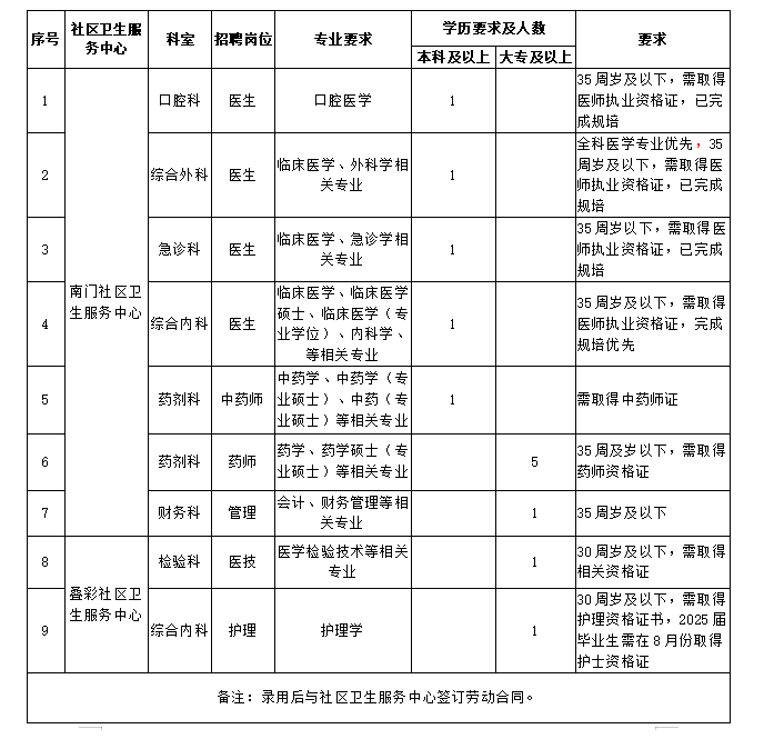 根據(jù)社區(qū)衛(wèi)生服務(wù)中心工作需要,現(xiàn)將2025年度(第二批)招聘崗位及有關(guān)事項公布如下: