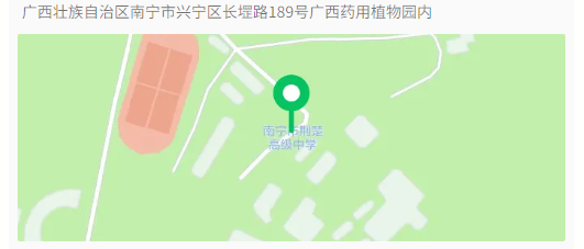 四輪機(jī)動(dòng)車先導(dǎo)航“廣西藥用植物園西門”,然后從西門(2號門)進(jìn)入植物園內(nèi),再駛達(dá)南寧市荊楚高級中學(xué)。