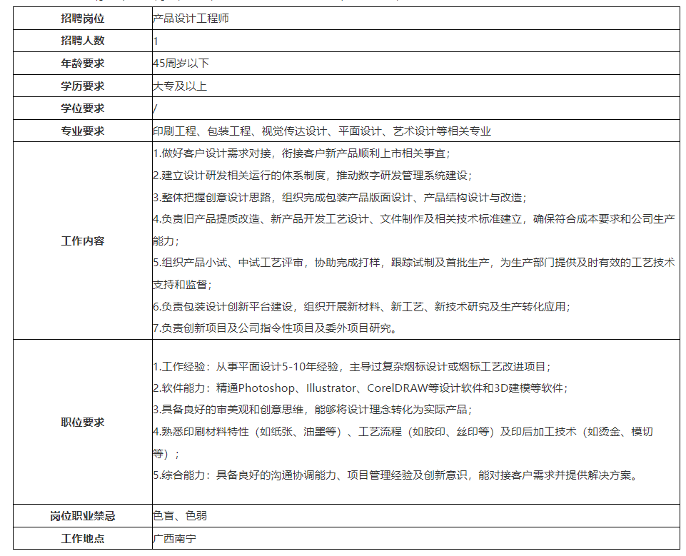 公司以創(chuàng)新引領(lǐng)發(fā)展,公司先后獲得“全國(guó)印刷示范企業(yè)”、“中國(guó)煙標(biāo)印刷行業(yè)最具實(shí)力十大領(lǐng)軍企業(yè)”、“廣西制造業(yè)企業(yè)50強(qiáng)”,連續(xù)三年獲得“廣西優(yōu)秀企業(yè)”、“賀州市億元納稅企業(yè)”等榮譽(yù)稱號(hào)。公司秉承以人為本的理念,尊重人才、重視人才,開展員工職業(yè)發(fā)展規(guī)劃,為每一位員工提供廣闊的發(fā)展機(jī)會(huì),充分發(fā)揮員工自主性和創(chuàng)造性。根據(jù)公司發(fā)展需要,現(xiàn)面向社會(huì)公開招聘員工。具體事項(xiàng)公告如下: