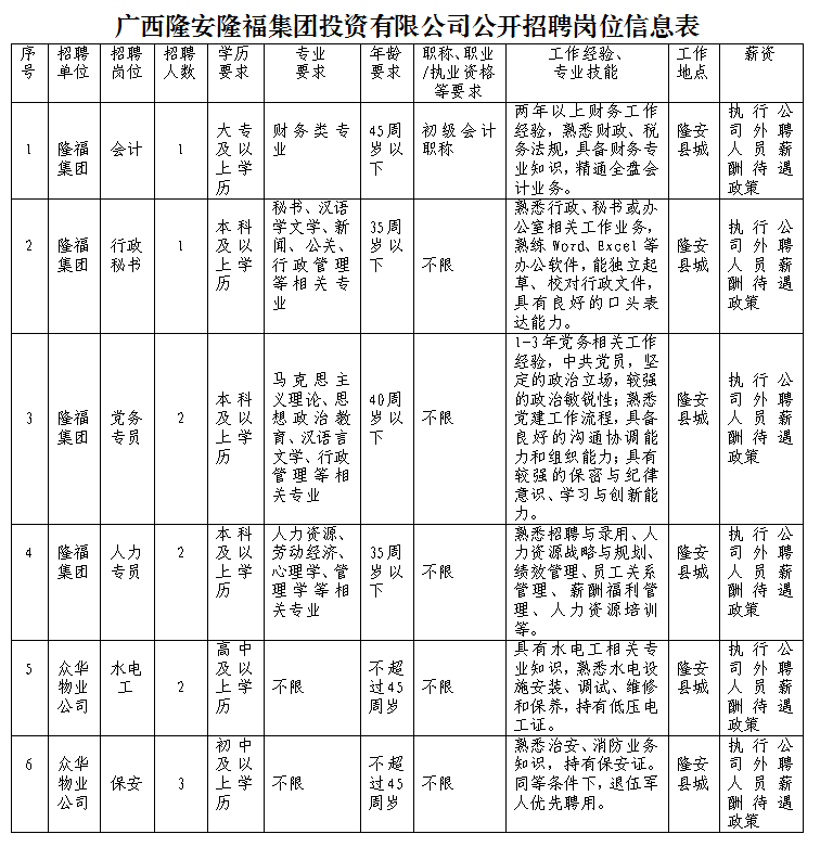 附件1:廣西隆安隆福集團投資有限公司公開招聘崗位信息.docx
