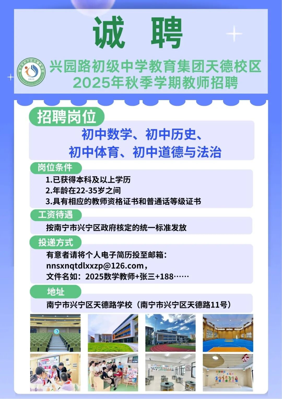 2025年南寧市興園路初級中學(xué)教育集團(tuán)天德校區(qū)秋季學(xué)期教師招聘