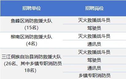 為滿足社會(huì)經(jīng)濟(jì)迅速發(fā)展對(duì)消防力量的需求,積極適應(yīng)新形勢(shì)新任務(wù)新要求,結(jié)合單位編制及工作情況需要,柳州市消防救援支隊(duì)擬面向社會(huì)公開招聘政府專職消防員、鄉(xiāng)鎮(zhèn)專職消防員,熱忱歡迎熱愛消防、銳意進(jìn)取、敢于挑戰(zhàn)的廣大有志青年加入。詳情如下: