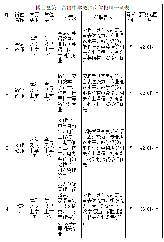 原文標(biāo)題:博白縣第十高級中學(xué)2025年人才招聘