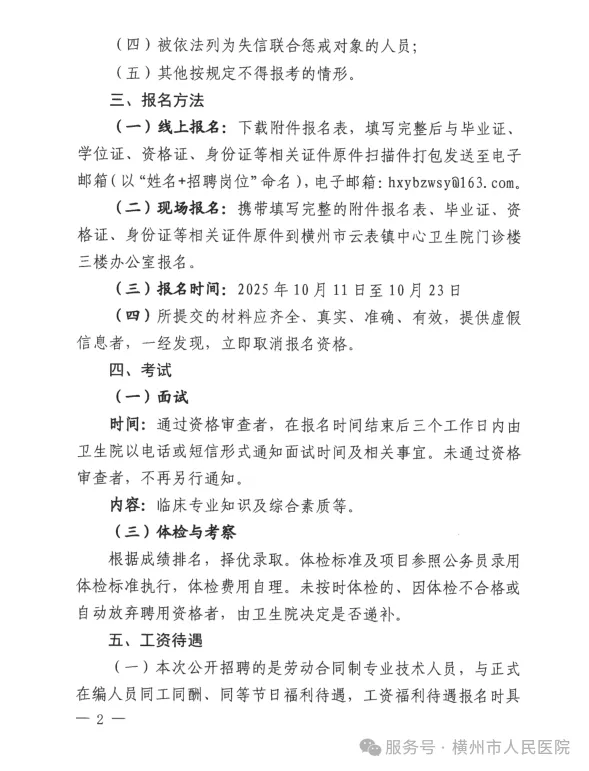 2025年橫州市云表鎮(zhèn)中心衛(wèi)生院公開招聘編外衛(wèi)生專業(yè)技術人員的公告