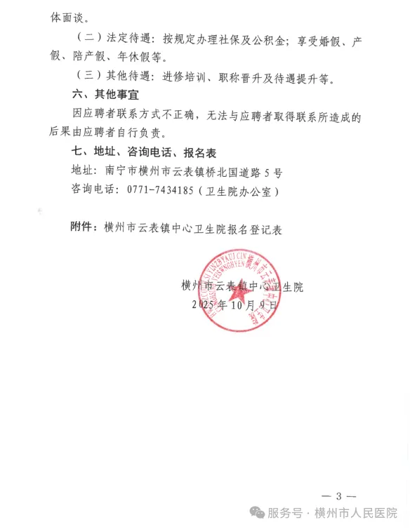 原文標題:2025年橫州市云表鎮(zhèn)中心衛(wèi)生院公開招聘編外衛(wèi)生專業(yè)技術人員的公告