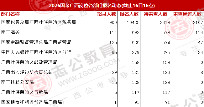 今天是報(bào)名第二天,小伙伴可要抓住此次上/岸機(jī)會啦!來看看廣西今天的報(bào)名數(shù)據(jù)吧。截止10月16日下午16:00,已經(jīng)有13116名考生報(bào)名,最熱崗220人報(bào)名!從各項(xiàng)數(shù)據(jù)來看,部分考生可能還持觀望態(tài)度。在接下來的報(bào)名時(shí)間里,可能會迎來報(bào)名人數(shù)大幅增長的情況,大家可以密切關(guān)注。
