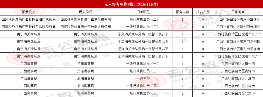 考生們注意!截至10月16日16時(shí),2026國考(廣西)地區(qū)還有71個無人報(bào)考,占全部748個職位的9.49%。想避開激烈競爭的話,不妨結(jié)合自己的條件,多看看這些冷門崗位~