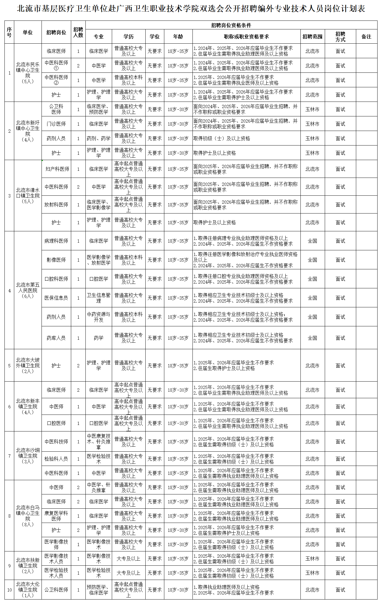 附件:1.北流市基層醫(yī)療衛(wèi)生單位赴廣西衛(wèi)生職業(yè)技術(shù)學(xué)院雙選會公開招聘編外專業(yè)技術(shù)人員崗位計(jì)劃表