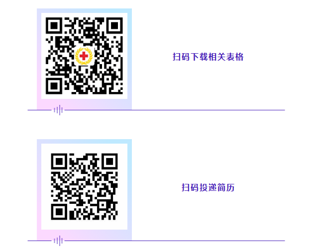 掃碼下載登記表等相關(guān)表格并填寫(xiě)“個(gè)人應(yīng)聘信息表”,將“個(gè)人應(yīng)聘信息表”及個(gè)人簡(jiǎn)歷以“姓名+專(zhuān)業(yè)+學(xué)校”的命名,發(fā)送至郵箱:hhyyrsk3858904@163.com;掃描二維碼,填報(bào)個(gè)人信息,上傳個(gè)人簡(jiǎn)歷。
