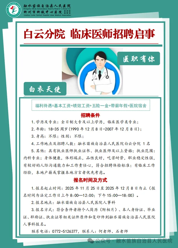 2025年融水苗族自治縣人民醫(yī)院緊密型醫(yī)共體白云中心衛(wèi)生院、永樂鎮(zhèn)衛(wèi)生院招聘
