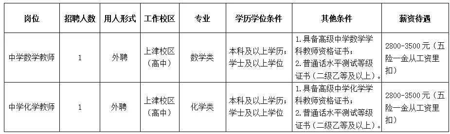 根據(jù)學校工作需要,南寧市第十中學上津校區(qū)(高中部)面向社會招聘教職工,具體崗位如下: