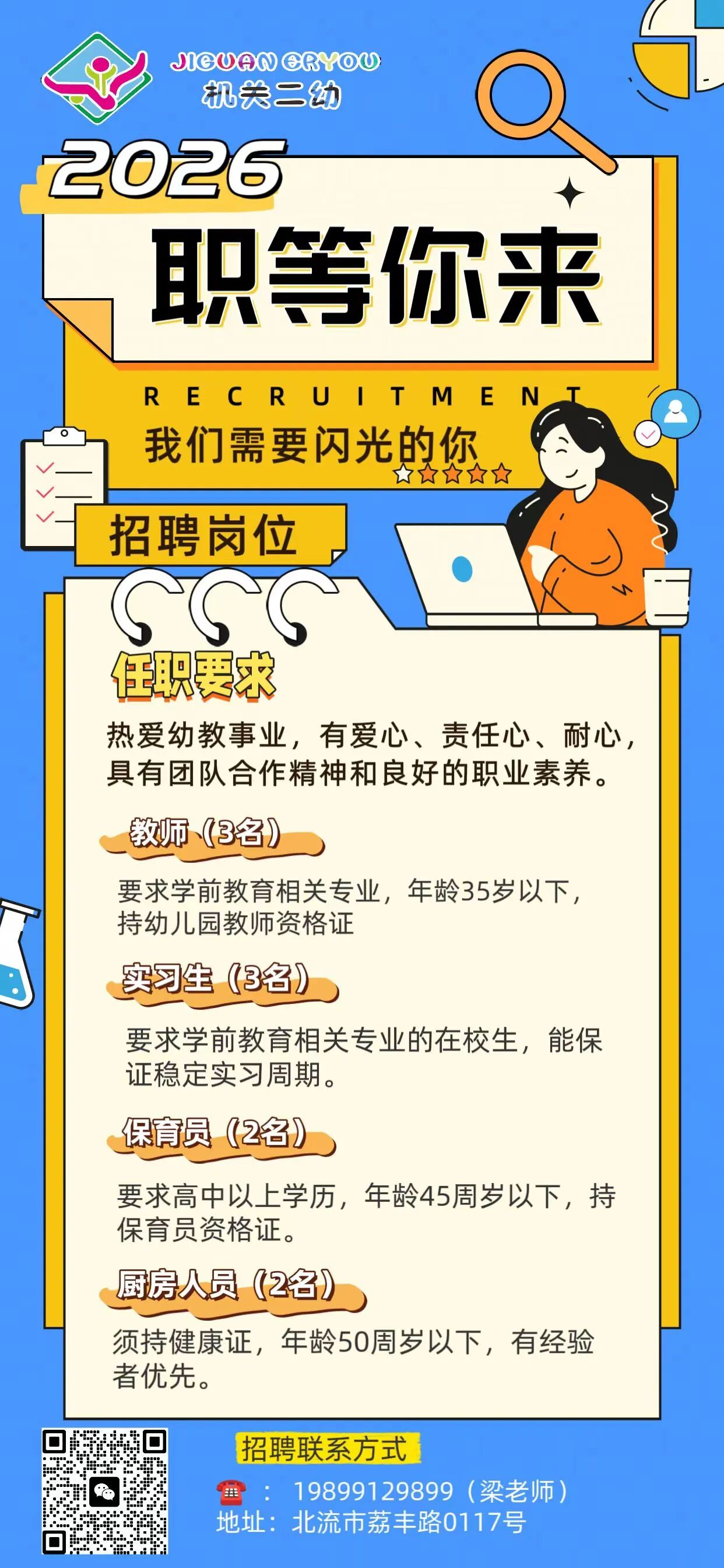 原文標(biāo)題:2026年春季期北流市機(jī)關(guān)第二幼兒園招聘