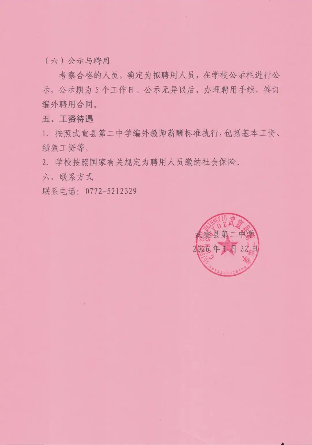 2026年來賓武宣縣第二中學(xué)編外(頂崗)教師招聘3人