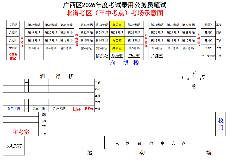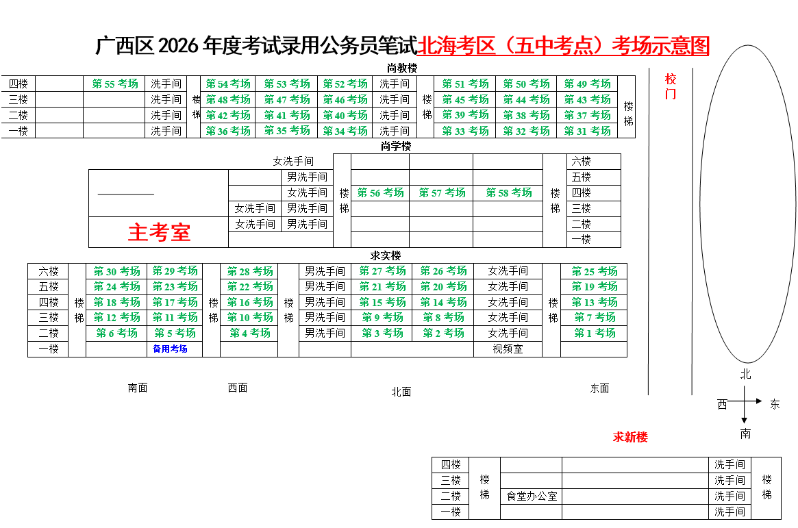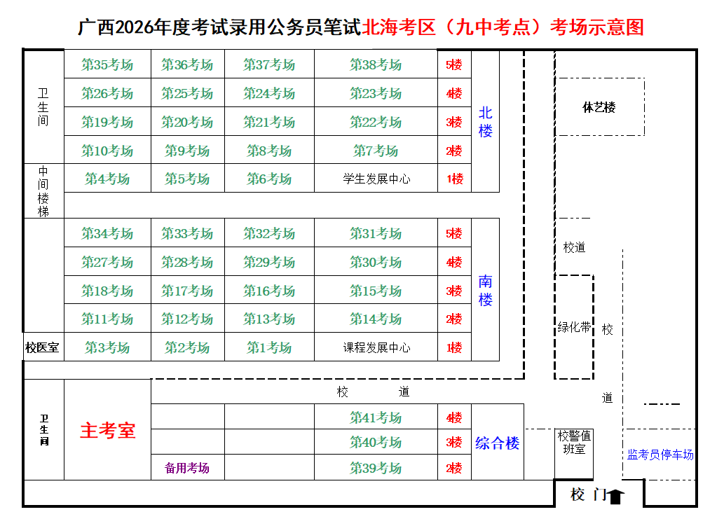 北??紖^(qū)共設(shè)置6個(gè)考點(diǎn),具體考點(diǎn)考場布置分別如下: