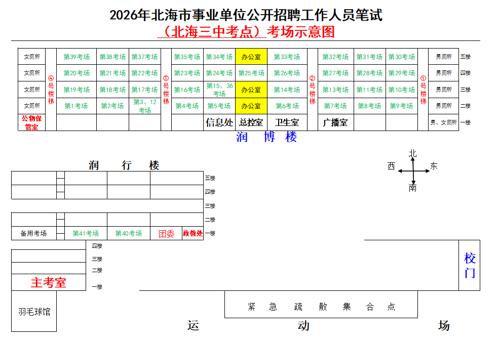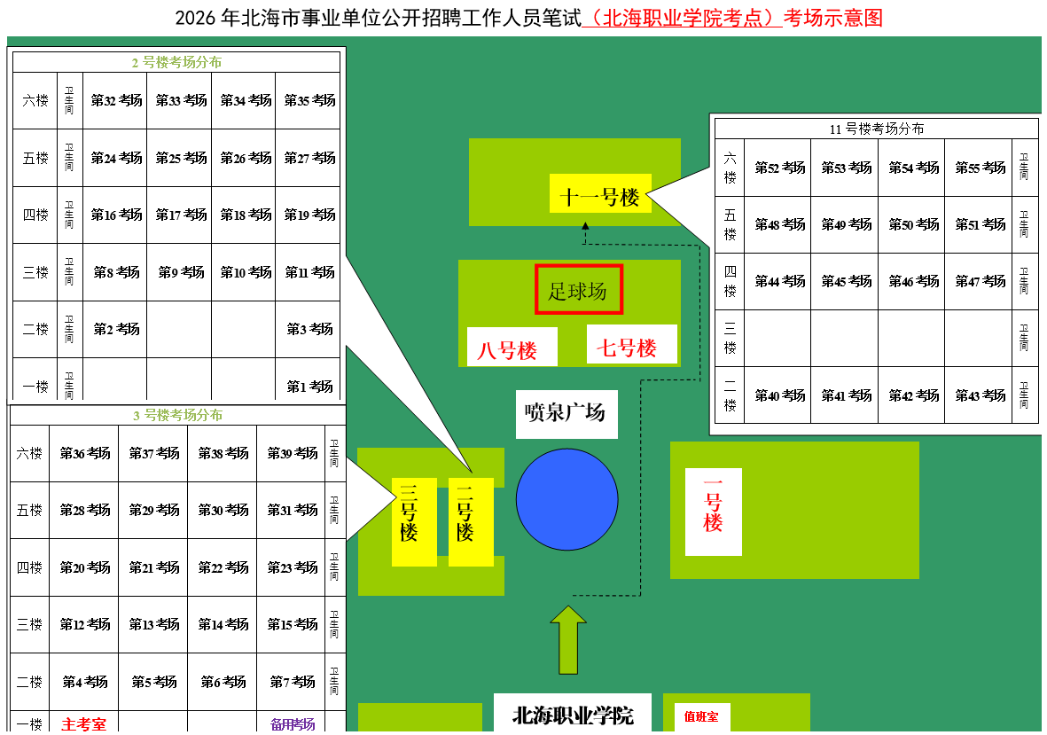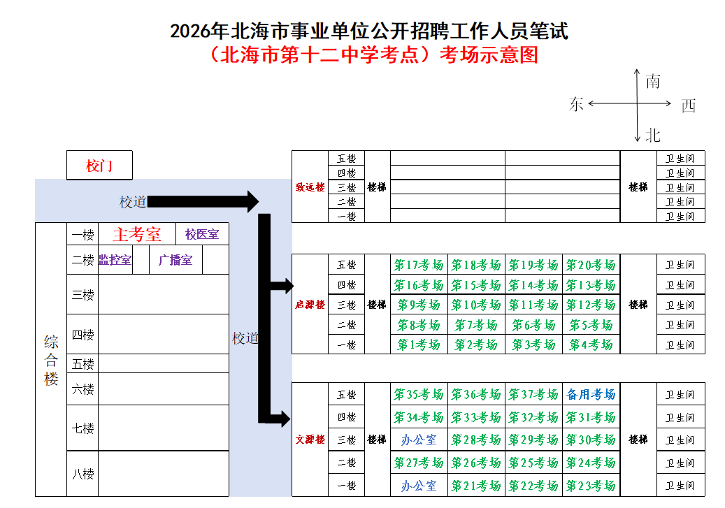 (一)3月28日進(jìn)行綜合管理類(A類)考試,北海市共設(shè)一個(gè)考點(diǎn),考點(diǎn)考場布置為: