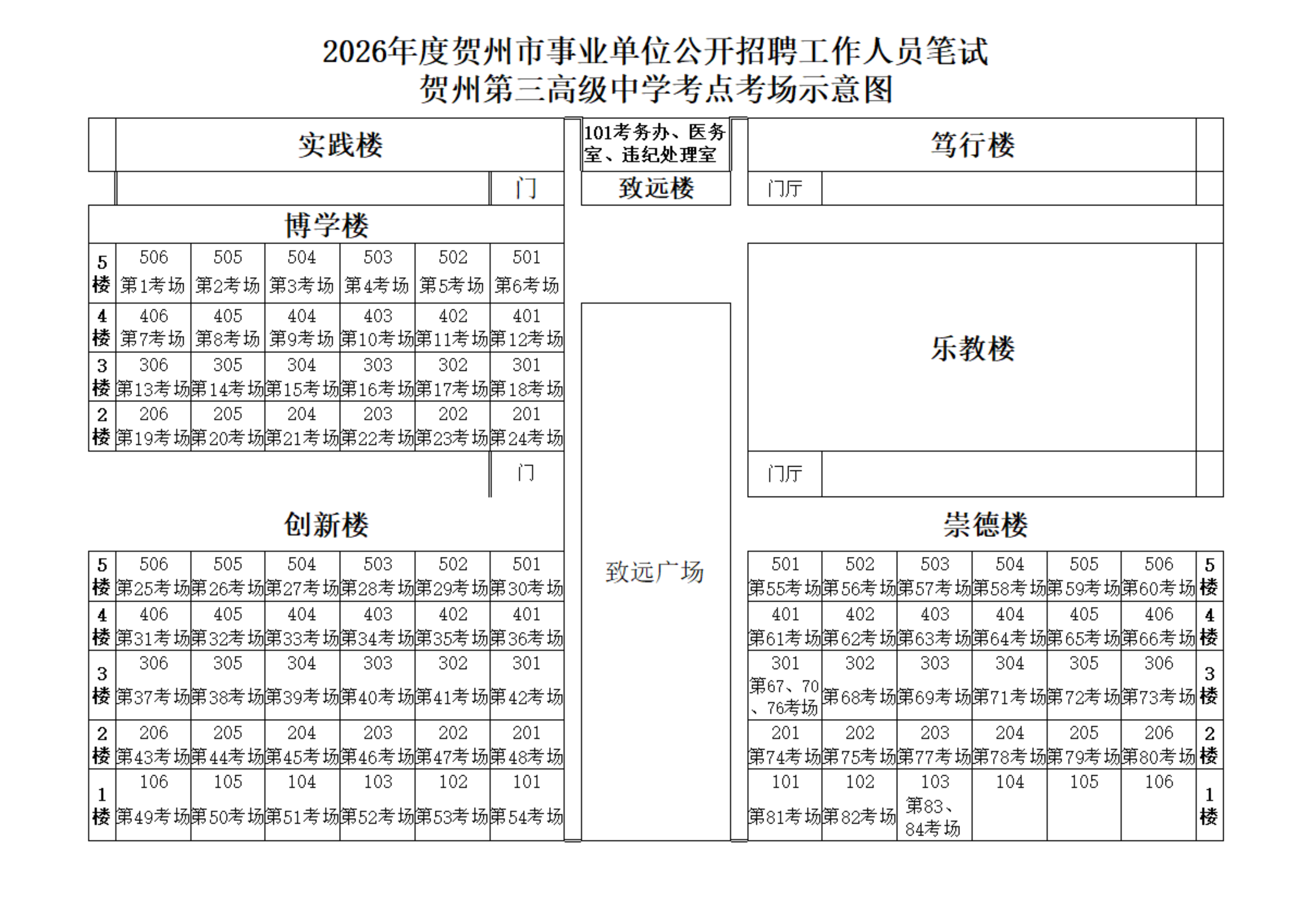 考生提前了解準(zhǔn)考證上指定的考試地點(diǎn),熟悉考點(diǎn)學(xué)校地址、交通路線,考試當(dāng)天預(yù)留足夠時(shí)間,避免因堵車、走錯(cuò)考點(diǎn)或遲到等原因影響參加考試。請(qǐng)關(guān)注考試當(dāng)天天氣,注意做好防雨防寒防滑等個(gè)人防護(hù)準(zhǔn)備。本次考試賀州市考區(qū)共設(shè)3個(gè)考點(diǎn),分別為: