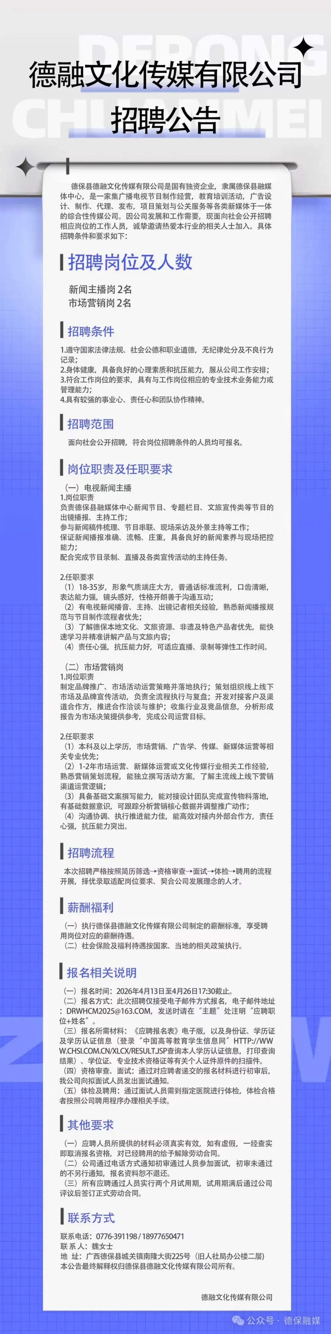 2026年德融文化傳媒有限公司招聘公告